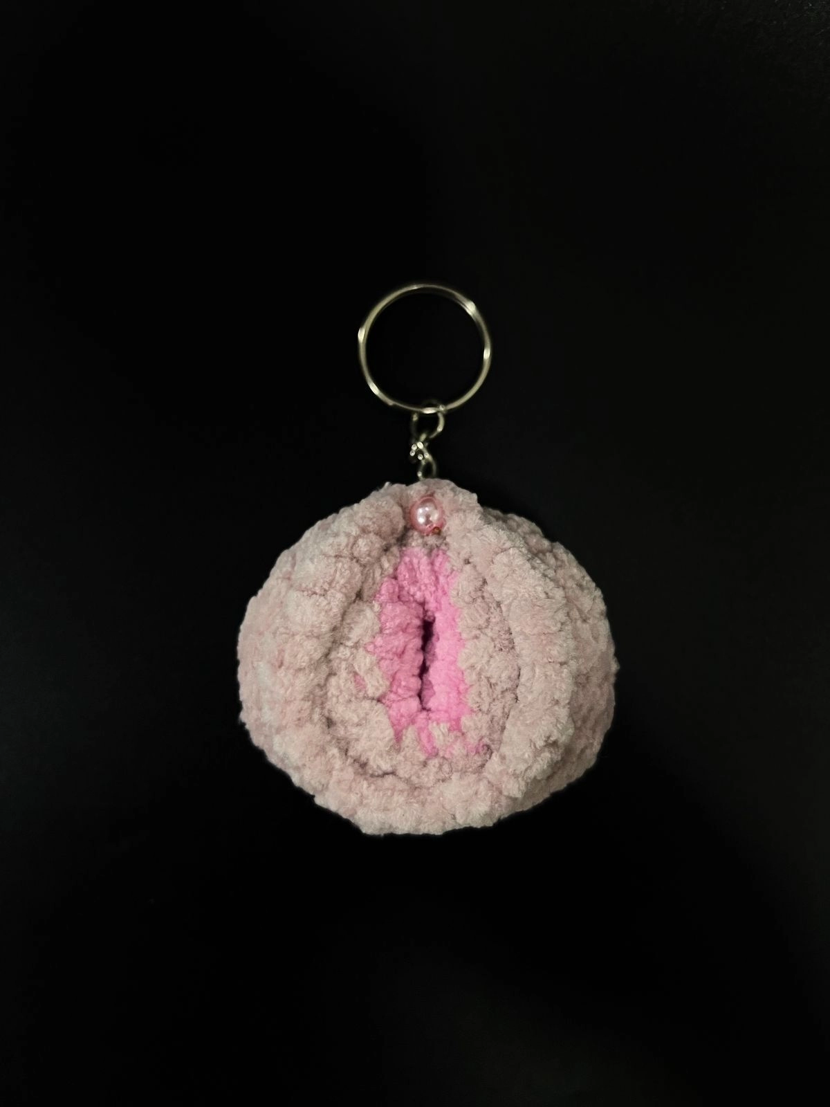 Мягкий брелок связан из нежной бархатной нити и выглядит как… Вагина!