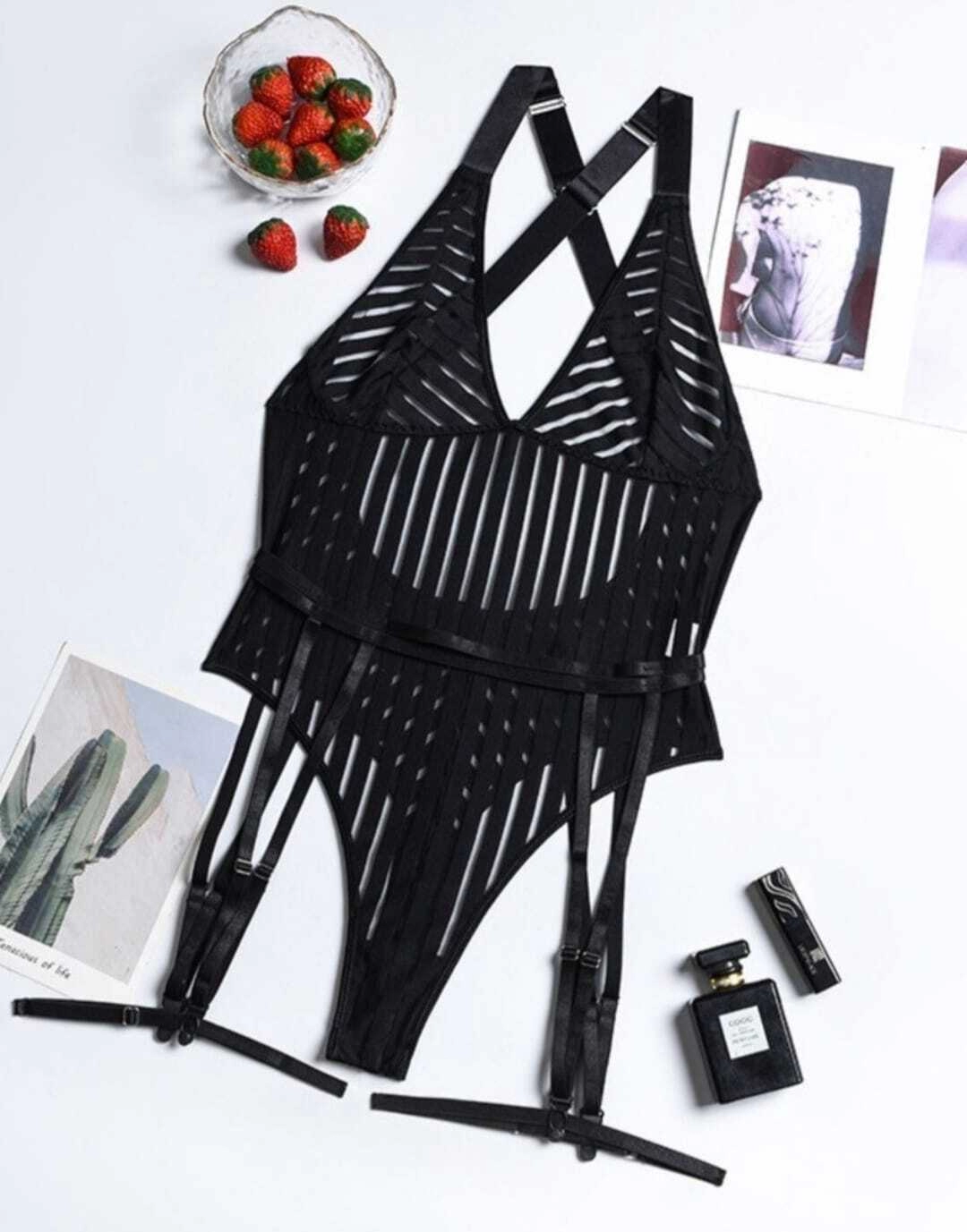Роскошное боди с глубоким декольте и модными стрепами.