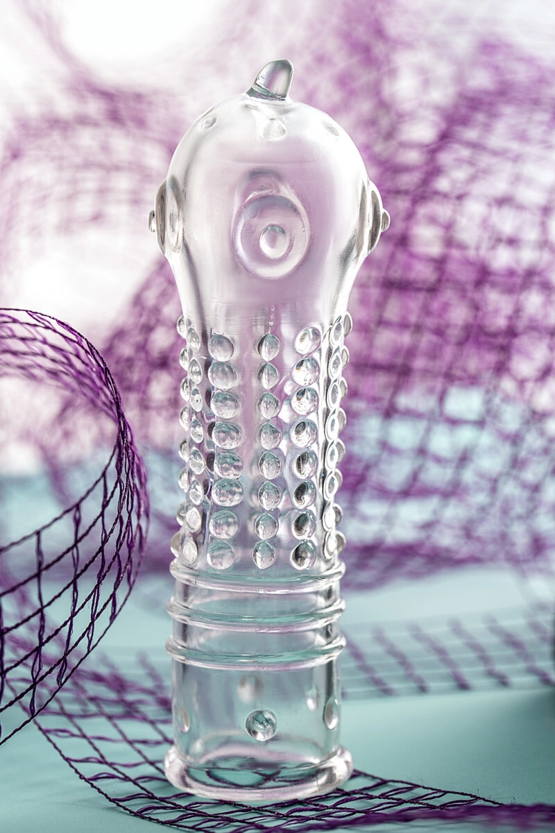 Прозрачная насадка на пенис с интенсивным рельефом от A-Toys.